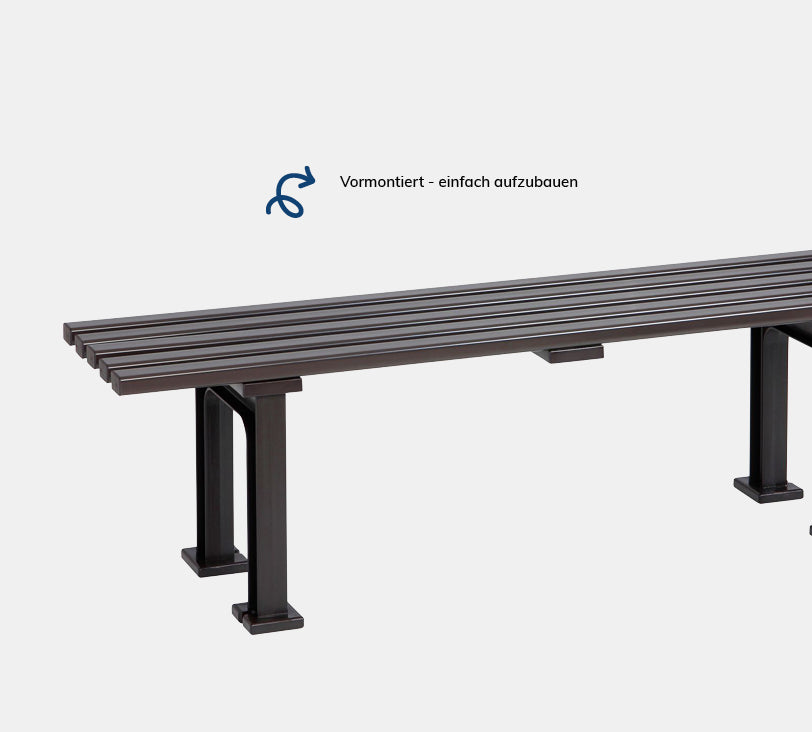 Stabiles Einstiegsmodell, bei dem Sie lediglich auf die Rückenlehne verzichten. Die Stabilität der 5 Mehrkammerprofile garantiert eine lange Lebensdauer und hält hohen Belastungen stand. Zudem ist die Bank durch ihr luftiges Design flexibel einsetzbar.